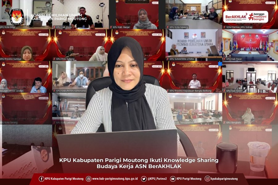 Parigi,kab-parigimoutong.kpu.go.id - Komisi Pemilihan Umum (KPU) Kabupaten Parigi Moutong turut serta dalam kegiatan Knowledge Sharing Budaya Kerja ASN BerAKHLAK yang diselenggarakan oleh KPU RI. Acara yang dilaksanakan secara daring melalui Zoom Meeting pada Kamis (25/09/2025) ini diikuti oleh seluruh KPU Provinsi dan KPU Kabupaten/Kota se-Indonesia.