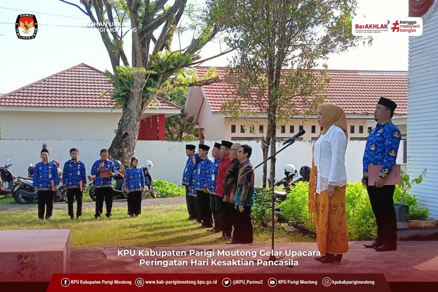 Parigi,kab-parigimoutong.kpu.go.id – Komisi Pemilihan Umum (KPU) Kabupaten Parigi Moutong melaksanakan upacara Peringatan Hari Kesaktian Pancasila, Rabu (1/10/2025). Kegiatan ini digelar di Halaman Kantor KPU Kabupaten Parigi Moutong dengan tema "Pancasila sebagai Perekat Menuju Indonesia Raya."
