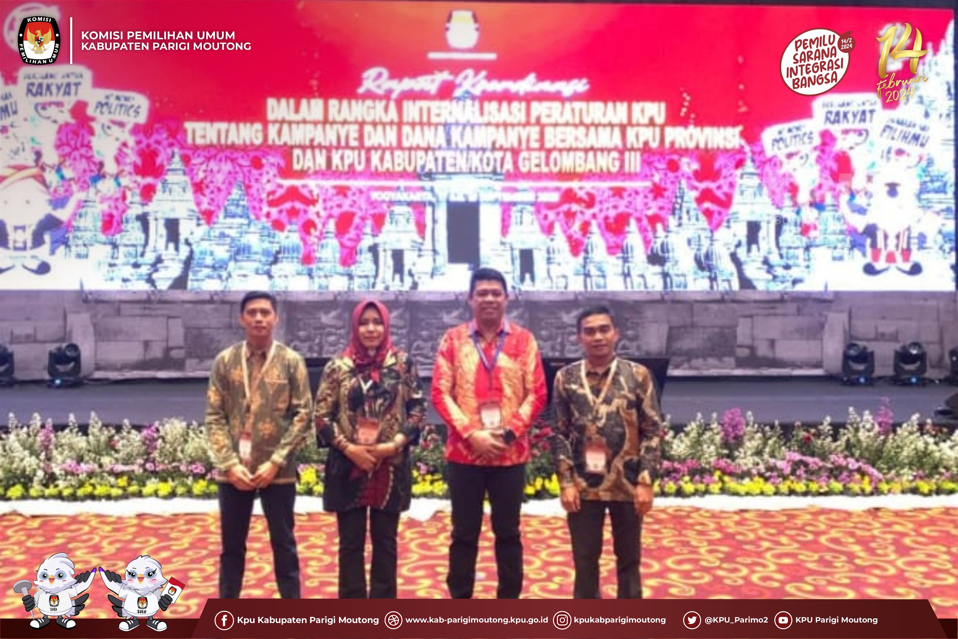 Yogyakarta, kab-parigimoutong.kpu.go.id - Komisi Pemilihan Umum (KPU) Kabupaten Parigi Moutong dalam hal ini Divisi Teknis Penyelenggara, Ariyana dan Divisi Sosialisasi, Pendidikan Pemilih, Partisipasi dan SDM, Abdul Gafur serta Kepala Sub Bagian Teknis Penyelenggara Pemilu, Partisipasi dan Hubmas, Taufik Talibo mengikuti Rapat Koordinasi (Rakor) dalam rangka Internalisasi Peraturan Komisi Pemilihan Umum (PKPU) tentang kampanye dan dana kampanye bersama KPU Provinsi dan KPU Kabupaten/Kota Gelombang III.