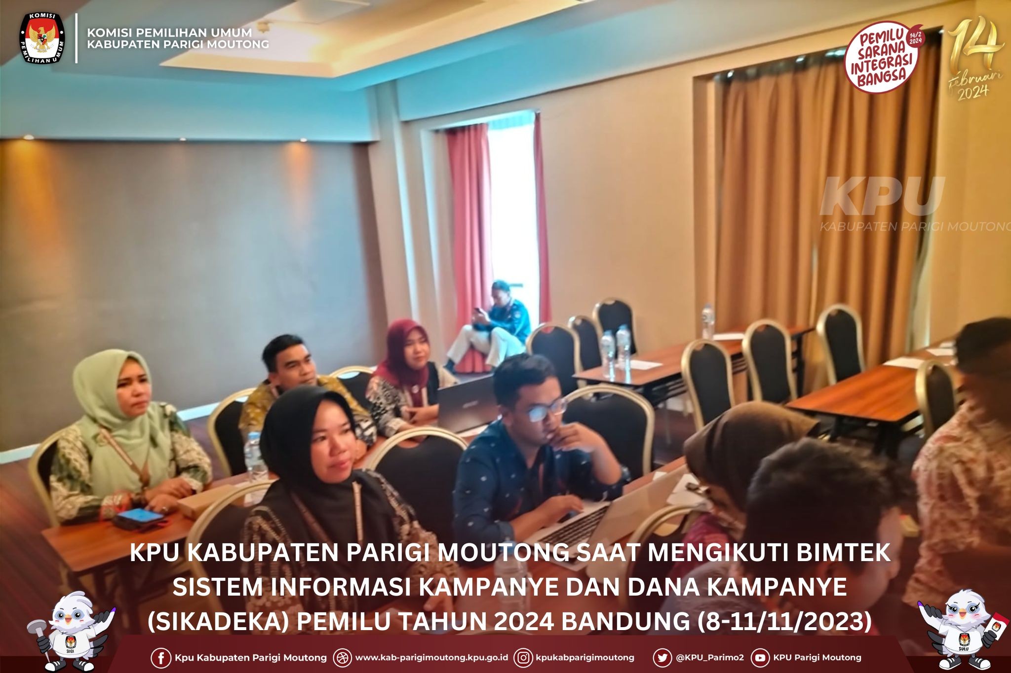 Bandung, kab-parigimoutong.kpu.go.id - Komisi Pemilihan Umum (KPU) Kabupaten Parigi Moutong mengikuti Bimbingan Teknis (Bimtek) Sistem Informasi Kampanye dan Dana Kampanye (SIKADEKA) Pemilu Tahun 2024 yang dilaksanakan di Kawasan Trans Studio Mall (TSM) Kota Bandung, Provinsi Jawa Barat. KPU Kabupaten Parigi Moutong yang hadir pada kegiatan tersebut yakni Ketua Divisi Sosialisasi, Pendidikan Pemilih, Partisipasi dan Sumber Daya Manusia, Abdul Gafur, Ketua Divisi Teknis Penyelenggara, Ariyana dan Operator SIKADEKA, Wirma. Kegiata berlangsung selama empat hari sejak tanggal 8 sampai dengan 11 November 2023. Pada kegiatan itu, Ditjen Politik dan Pemerintahan Umum Kemendagri, Danang Binuko selaku narasumber memaparkan materi dengan judul peran pemerintah dan pemerintah daerah dalam menjaga stabilitas politik menjelang Pemilu Tahun 2024. Dalam materinya, dukungan pemerintah dan pemerintah daerah dalam kesiapan pelaksanaan Pemilu Tahun 2024 merupakan hasil kesepakatan Pemerintah, DPR RI, dan Penyelenggara Pemilu pada rapat kerja bersama Menteri dalam Negeri dan rapat dengar pendapat dengan mendagri, KPU, Bawaslu dan DKPP tanggal 24 Januari dan 4 Juni 2022 dengan hasil Pemilu dilaksanakan pada hari Rabu, 14 Februari 2024 dan Pilkada pada hari Rabu, 27 November 2024. Kegiatan bimtek terbagi menjadi 11 kelas dalam 3 sesi dihari kedua dan ketiga dan KPU Provinsi Sulawesi Tengah, khususnya KPU Parigi Moutong terjadwalkan di sesi 3. Materi bimtek selanjutnya dipaparkan oleh Kepala Bagian Teknis Penyelenggara Pemilu, Partisipasi dan Hubungan Masyarakat, Cherly Trisna Ilyas dengan judul materi Sistem Informasi Kampanye dan Dana Kampanye. "SIKADEKA merupakan sistem informasi yang berbasis web yang digunakan untuk membantu mengelola kegiatan kampanye, pelaporan dan kampanye dan audit dana kampanye peserta Pemilu Tahun 2024," Pungkasnya. Selanjutnya kegiatan ditutup secara resmi oleh Kepala Biro Teknis Penyelenggaraan Pemilu, Melgia Carolina Van Harling. (Humas KPU Parimo Wr/Foto By/ed Gafur)