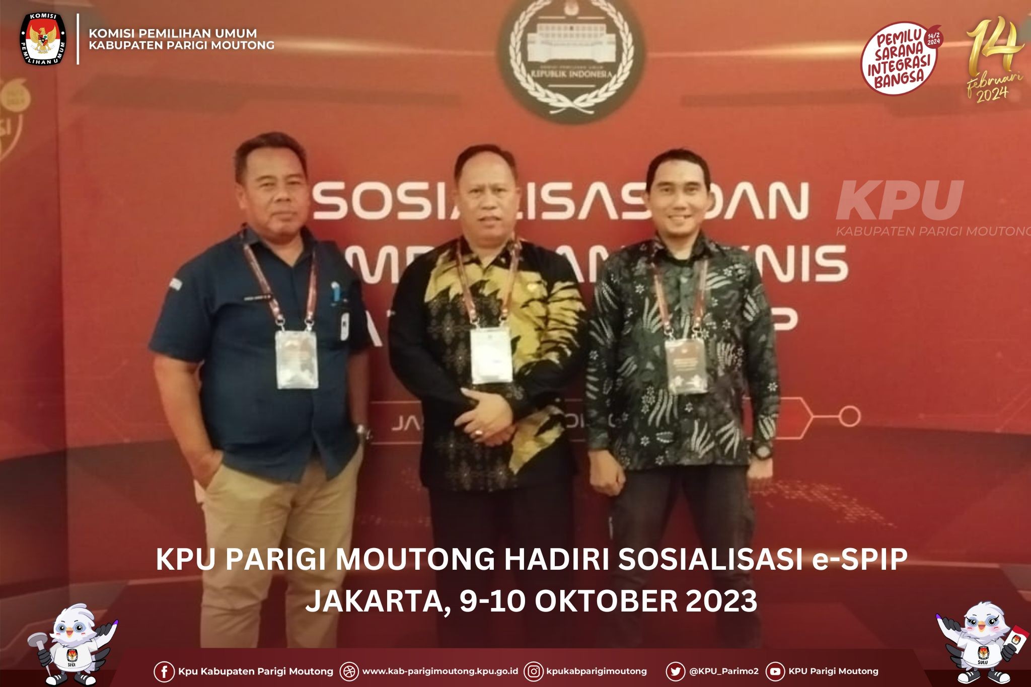 Jakarta, kab-parigimoutong.kpu.go.id - Ketua Komisi Pemilihan Umum (KPU) Parigi Moutong, Dirwan Korompot, Ketua Divisi Hukum dan Pengawasan, Moh Misbahudin serta Sekretaris KPU Parigi Moutong, Andi Arif Syawalani, menghadiri sosialisas sekaligus peluncuran aplikasi Sistem Pengendalian Internal Pemerintah atau e-SPIP, tanggal 9-10 Oktober 2023, di Jakarta. Ketua KPU RI, Hasyim Asy'ari, dalam sambutannya membuka kegiatan sosialisasi sekaligus peluncuran aplikasi tersebut, mengatakan kalau sebelumnya KPU sudah memiliki SPIP, namun masih sebatas sistem, yang sebagian besar, dilakukan secara manual, sementara disisi lain, tuntutan pekerjaan yang semakin cepat dengan luasan cakupan semakin luas. "Manusia hanya bisa menganalisa, ataupun mempredikasi, namun ada beberapa hal yang sama sekali tidak bisa dikontrol secara maksimal, karena fitrah manusia, yang punya keterbatasan, makanya dengan hadirnya aplikasi e-SPIP, akan semakin memaksimalkan ikhtiar kita, menuju lembaga yang sehat dan berintegritas," tegasnya. Kemudian Ketua KPU Parigi Moutong,Dirwan menambahkan kalau e-SPIP tersebut adalah sebuah aplikasi yang diatur dalam Peraturan KPU Nomor 8 tahun 2023 tentang Penyelenggaraan Sistem Pengendalian Internal Pemerintah di lingkungan KPU secara berjenjang. "Alhamdulillah, tadi malam sudah diluncurkan aplikasinya, yang nantinya akan semakin memudahkan KPU melaksanakan pengendalian internal," pungkasnya. Setelah peluncuran e-SPIP maka akan dilakukan kegiatan bimbingan teknis, kepada seluruh operator SPIP, dan juga para Kasubag Hukum dan Pengawasan di lingkungan KPU secara berjenjang se Indonesia di lokasi yang sama, pada tanggal 11-12 Oktober 2023 mendatang. (Humas kpu kab parimo wirma/foto misbah/ed misbah)