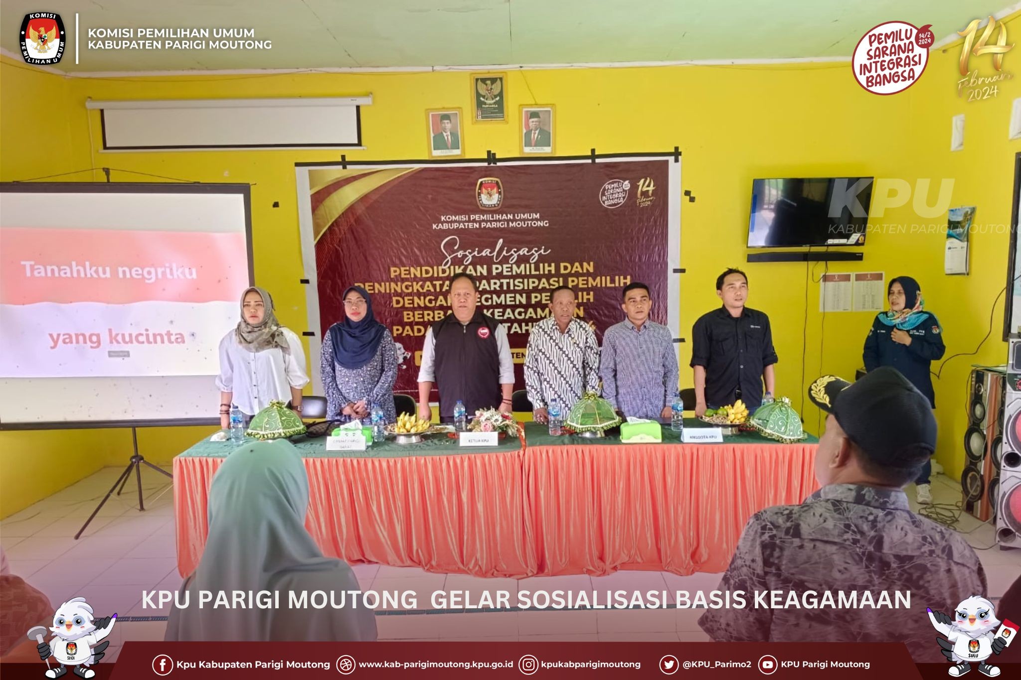 Parigi, kab-parigimoutong.kpu.go.id - Komisi Pemilihan Umum (KPU) Kabupaten Parigi Moutong menggelar sosialisasi pendidikan pemilih dan peningkatan partisipasi pemilih dengan segmen pemilih berbasis keagamaan pada pemilihan umum (Pemilu) Tahun 2024, Kamis (7/9/2023).