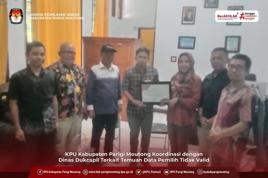 Parigi,kab-parigimoutong.kpu.go.id — Komisi Pemilihan Umum (KPU) Kabupaten Parigi Moutong terus memperkuat sinergi antarinstansi dalam rangka pemutakhiran data pemilih berkelanjutan. Pada kesempatan ini, Ketua KPU Kabupaten Parigi Moutong, Ariyana, bersama Anggota KPU Daiman Hidayat, I Made Koto Parianto, dan Mohammad Iskandar Mardani melakukan koordinasi langsung dengan Dinas Kependudukan dan Pencatatan Sipil (Dukcapil) Kabupaten Parigi Moutong. Kamis(18/09/2025) Pertemuan tersebut membahas temuan penting dari hasil pemutakhiran data, yaitu sebanyak 600 data penduduk yang teridentifikasi tidak valid akibat ketidaksesuaian Nomor Induk Kependudukan (NIK). KPU berharap agar Dinas Dukcapil dapat segera menindaklanjuti temuan tersebut guna memastikan akurasi dan integritas data pemilih. Dalam koordinasi tersebut, KPU meminta agar proses verifikasi dan perbaikan data dapat diselesaikan paling lambat tanggal 30 September 2025. Hal ini penting dilakukan sebelum KPU menetapkan hasil pemutakhiran data pemilih Triwulan III dalam rapat pleno yang dijadwalkan pada 2 Oktober 2025 mendatang. Sebagai bentuk apresiasi atas kontribusi Dinas Dukcapil dalam menyukseskan pelaksanaan Pemilu dan Pemilihan Tahun 2024, KPU Kabupaten Parigi Moutong juga menyerahkan piagam penghargaan kepada pihak Dukcapil. Penghargaan ini diberikan sebagai pengakuan atas kerja sama dan dukungan aktif dalam memastikan validitas data kependudukan yang menjadi dasar utama dalam penyusunan daftar pemilih. Langkah ini merupakan bagian dari komitmen KPU dalam menjaga kualitas data pemilih yang akurat, mutakhir, dan dapat dipertanggungjawabkan. Koordinasi lintas lembaga seperti ini menjadi fondasi penting dalam mewujudkan pemilu yang inklusif, transparan, dan terpercaya.(humas kpu parimo)