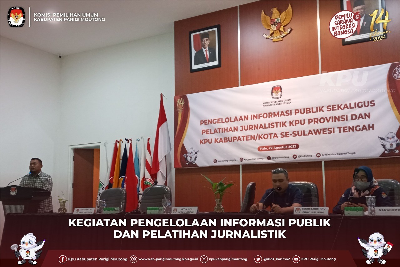 Palu - Komisi Pemilihan Umum (KPU) Kabupaten Parigi Moutong mengikuti kegiatan pengelolaan informasi dan pelatihan jurnalistik yang diselenggarakan oleh KPU Provinsi Sulawesi Tengah (Sulteng). Ketua KPU Sulteng Resvirenol dalam sambutannya Selasa (22/8/2023) mengatakan, kegiatan ini dimaksudkan untuk meningkatkan kualitas penulisan berita pada website dan media sosial masing-masing KPU kabupaten/kota. "Harapan kami pegawai yang mengikuti giat ini dapat mengimplementasikan materi-materi di peroleh," ujarnya. Ketua Aliansi Jurnalis Indonesia (AJI) Kota Palu Yardin mengemukakan, penulisan berita pada umumnya wajib mengacu pada unsur 5W+1H, dan bisa menggunakan piramida terbalik. "Acuan utama menulis berita adalah 5W+1H, ini rumus yang sudah baku," ucapnya. Kegiatan tersebut dihadiri Ketua Divisi Sosialisasi, Pendidikan Pemilih, Partisipasi dan SDM, Ketua Divisi Perencanaan Data dan Informasi KPU Sulteng dan sejumlah pejabat KPU provinsi Sulteng dan Kasubbag Teknis Penyelenggara, Sosialisasi Pendidikan Pemilih, Partisipasi dan Hubungan Masyarakat KPU kabupaten/kota Se Sulteng serta operator media sosial. Penulis : Wirma- Humas KPU Kabupaten Parigi Moutong