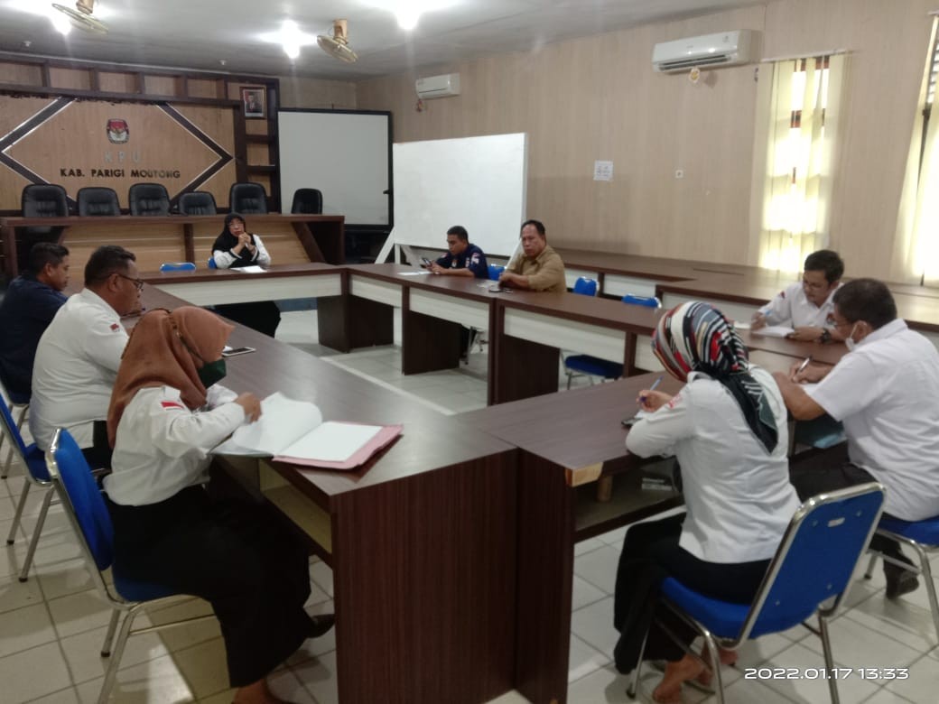 Parigi, Komisi Pemilihan Umum Kabupaten Parigi Moutong melaksanakan rapat rutin bertempat di Aula Kantor KPU Kabupaten Parigi Moutong Senin (24/01/2022) Hadir dalam rapat tersebut Komisioner KPU Kabupaten Parigi Moutong, Sekretaris KPU Kabupaten Parigi Moutong bersama para kasubag di lingkungan sekretariat KPU Kabupaten Parigi Moutong. Rapat tersebut dipimpin oleh ketua KPU Kabupaten Parigi Moutong, Sulfiana, Dg. Patanga, S.Sos. terdapat beberapa hal yang dibahas dalam rapat tersebut, yakni antara lain; Kesiapan kegiatan Rapat Koordinasi terkait penataan dapil bersama KPU Provinsi Sulawesi Tengah Program Kolaborasi KPU Kabupaten Parigi Moutong bersama Kesbangbol Rapat Pleno DPB dan Rapat Koordinasi yang tetap akan dilaksanakan di Tahun 2022 Persiapan untuk penyusunan kegiatan-kegiatan yang akan dilaksanakan pada bulan Februari Tahun 2022 Rapat tersebut berjalan aman dan lancar dengan tetap mematuhi protokol kesehatan pencegahan covid-19 (HUMAS KPU)