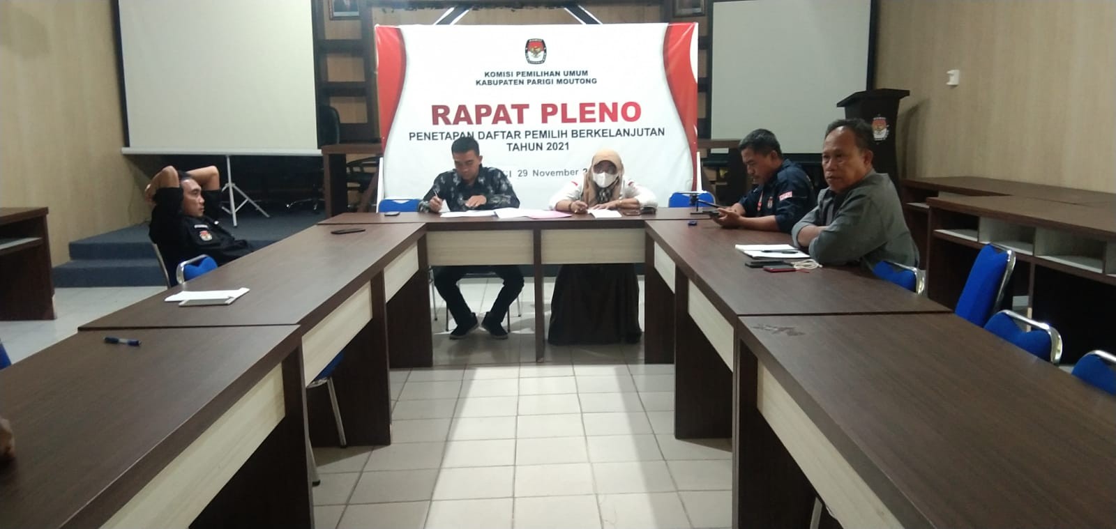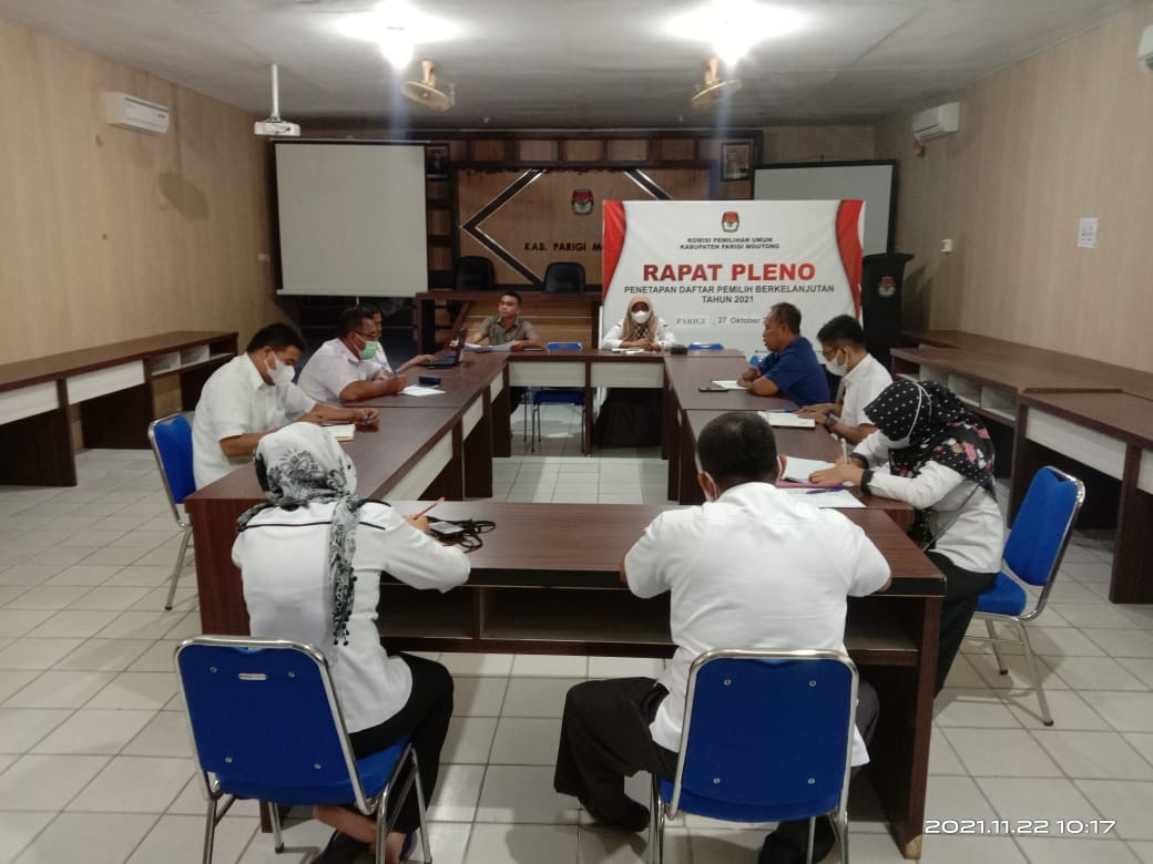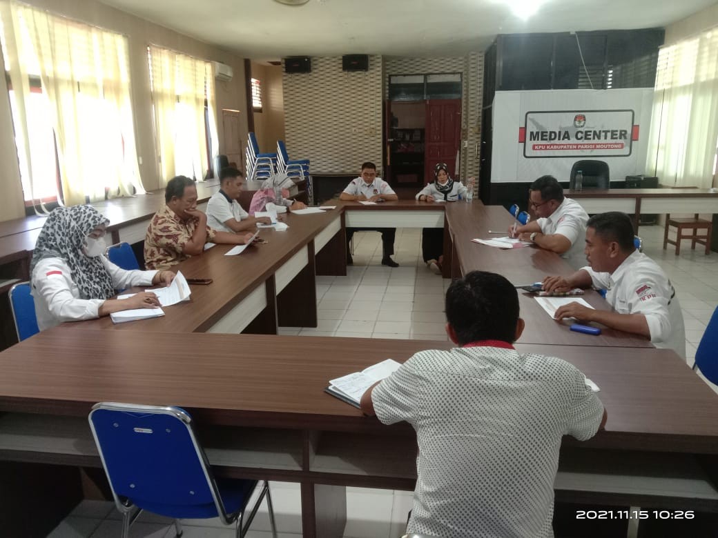 Palu, Selasa, 9 November 2021 KPU Parigi Moutong mengikuti Rapat Koordinasi Evaluasi Mekanisme Pencalonan dan Penggunaan Aplikasi Sistem Informasi Pencalonan (Silon) Se-Indonesia melalui Zoom Meeting bertempat di ruang RPP Kantor KPU Provinsi Sulawesi Tengah.