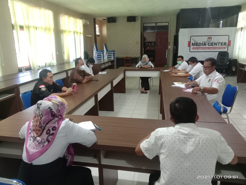 Parigi, KPU Kabupaten Parigi Moutong pada Senin 25 Oktober 2021, bertempat di Aula Kantor KPU Kabupaten Parigi Moutong melaksanakan Rapat Koordinasi terkait Pemutakhiran Daftar Pemilih Berkelanjutan (DPB) periode Oktober 2021.