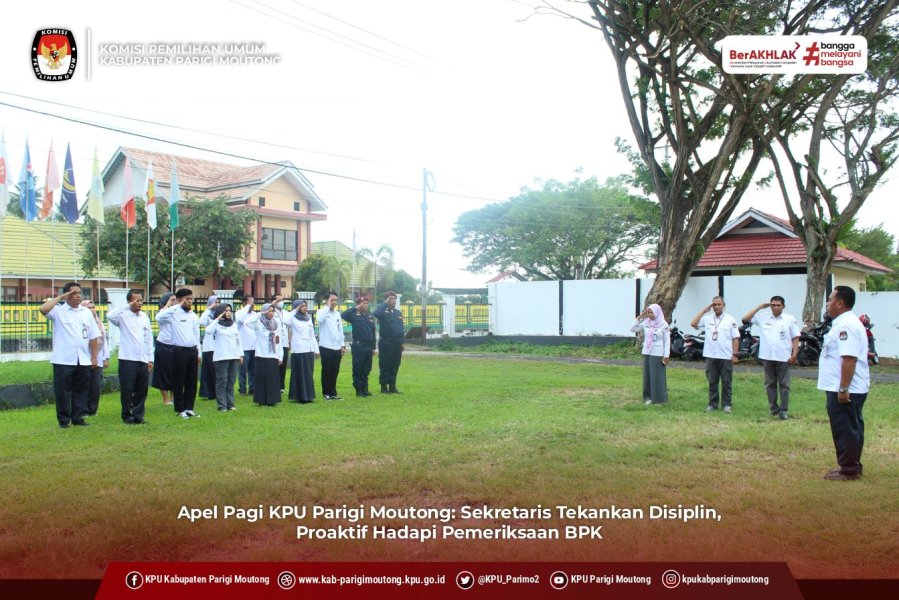 Parigi, kab-parigimoutong.kpu.go.id — Komisi Pemilihan Umum (KPU) Kabupaten Parigi Moutong laksanakan apel pagi rutin bertempat di halaman kantor KPU dan diikuti oleh Sekretaris, para Kepala Subbagian, serta seluruh staf sekretariat. Senin (28/07/2025). Apel pagi dipimpin langsung oleh Sekretaris KPU Kabupaten Parigi Moutong, Andi Arif Syawalani Burhanuddin. Dalam arahannya, beliau menekankan pentingnya kedisiplinan, keteraturan atribut pegawai, serta kesiapan menghadapi pemeriksaan Badan Pemeriksa Keuangan (BPK). "Sebelum saya memulai penyampaian, saya akan mengecek yang pertama terkait keseragaman atribut—mulai dari pakaian, papan nama, pin Korpri, dan ID card pegawai. Kemudian mengecek kehadiran setiap pegawai per subbagian. Terkait kehadiran, harus bisa memanage waktu dengan baik," ujar Andi Arif di hadapan peserta apel. Lebih lanjut, Sekretaris KPU menginformasikan adanya jadwal pemeriksaan dari BPK pasca pertemuan daring yang dilaksanakan sehari sebelumnya. Meskipun belum ada kepastian satuan kerja (satker) mana yang akan menjadi sampel pemeriksaan, beliau meminta seluruh jajaran agar siap dan proaktif, khususnya dalam mendukung Subbagian Keuangan. "Hari ini dijadwalkan pemeriksaan oleh BPK, namun kita belum tahu satker mana yang menjadi sampel. Jadi tolong kita proaktif membantu teman-teman di bagian keuangan untuk melengkapi dokumen-dokumen yang diperlukan," tegasnya. Dalam kesempatan tersebut, ia juga menyampaikan terkait pertanggungjawaban keuangan hibah Pilkada. KPU Kabupaten Parigi Moutong telah mengembalikan sisa dana hibah ke kas daerah tepatnya pada hari Jum’at 25 Juli 2025. Kegiatan apel pagi ini menjadi momentum penting untuk memperkuat koordinasi, kedisiplinan, serta memastikan kesiapan lembaga dalam menghadapi proses audit dan evaluasi dari pihak eksternal. (HUMAS KPU PARIMO)